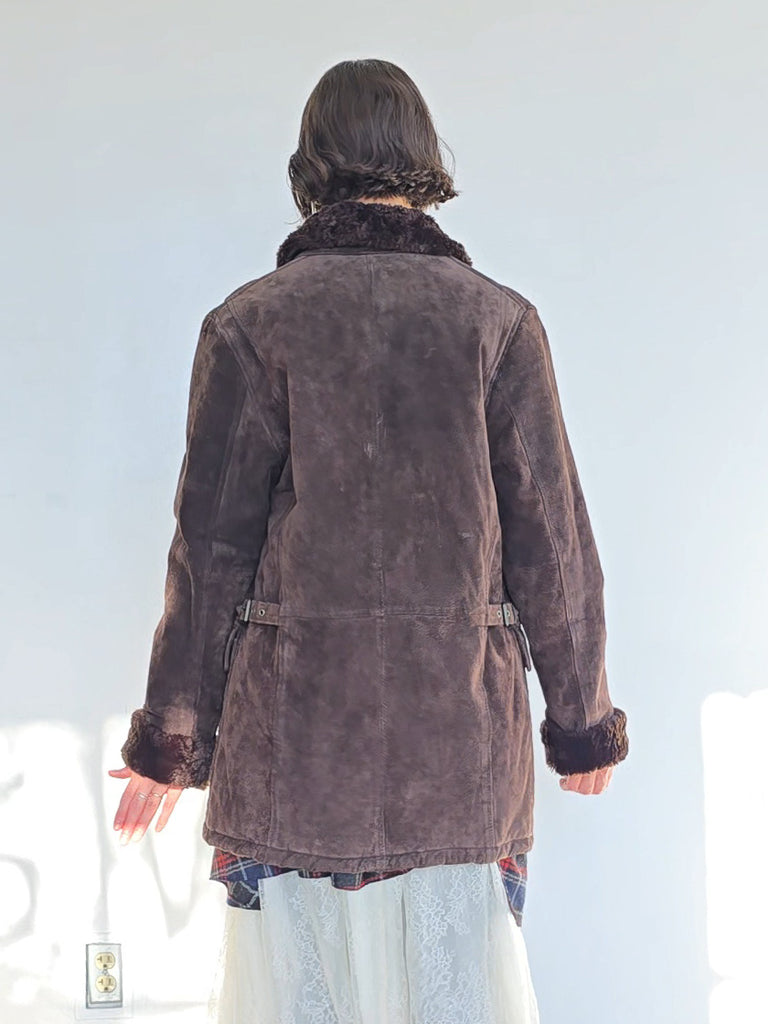 Dark brown leather zip up coat. Faux fur lining and trim. Made by Jones NY. Excellent shape.