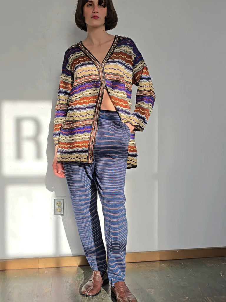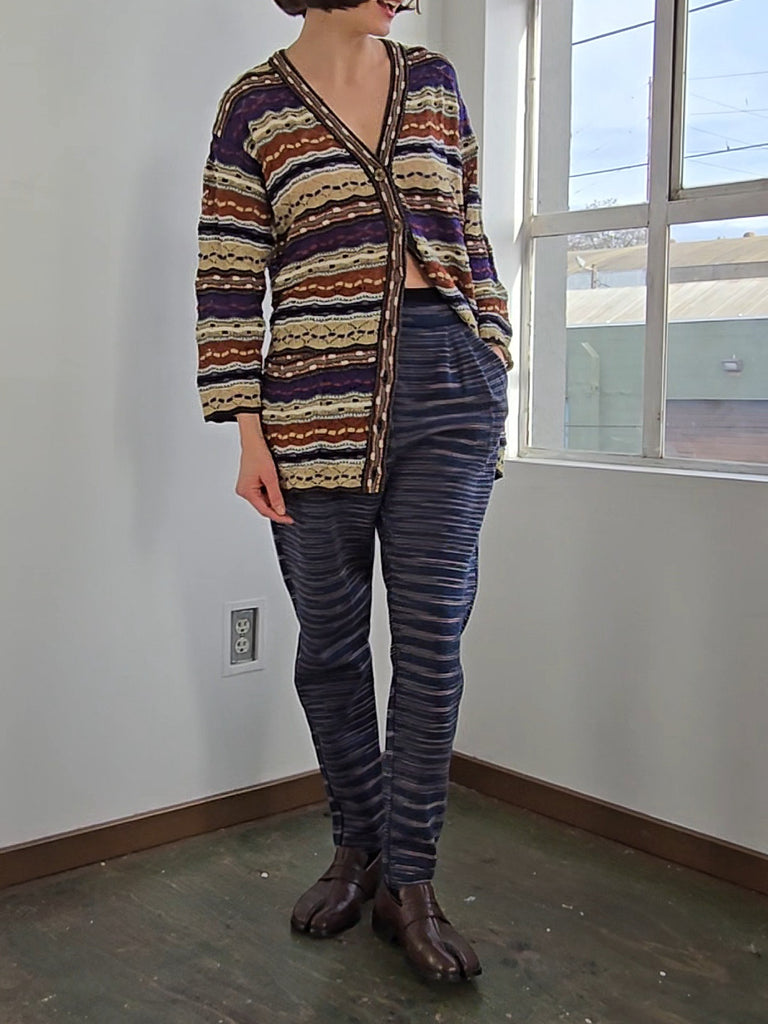 Missoni tapered joggers, in a wool blend. Elastic waist with pockets at the hips. A few spots of pilling, but in great condition.