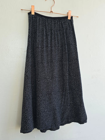 Vintage rayon black polka dot skirt with elastic waist. Excellent condition. Marked size S.