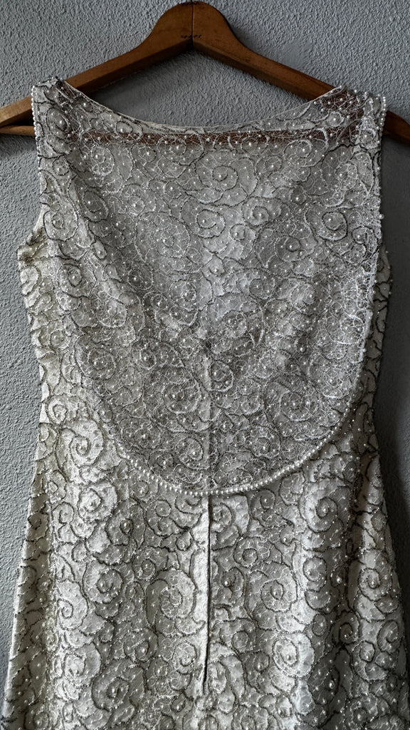 60s White Beaded Dress w/Caplet
