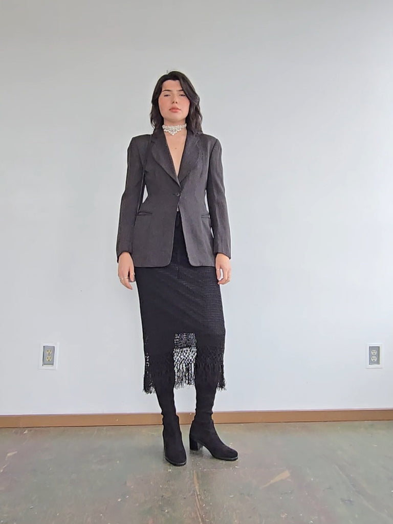 Vintage 1990s/early 2000s black crochet skirt. Is lined so is not see-through. Stretchy fabric. Great vintage condition, marked size XL.