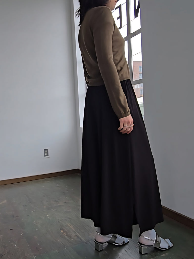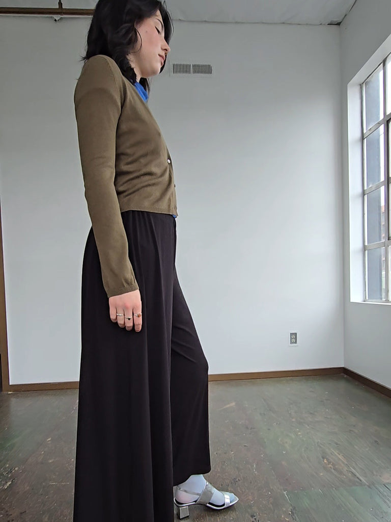 Vintage Issey Miyake label made in Japan black slinky wide leg pants with elastic waist. Super stretchy material. Excellent condition, marked size 4.