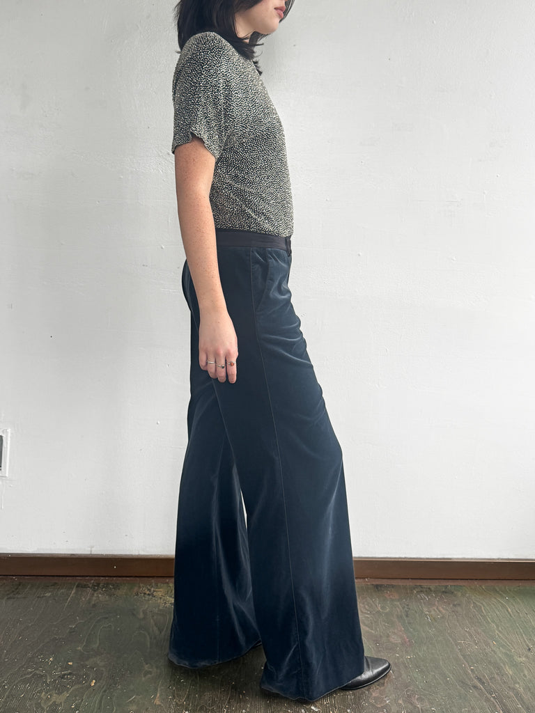Silver Beaded Silk Bodysuit