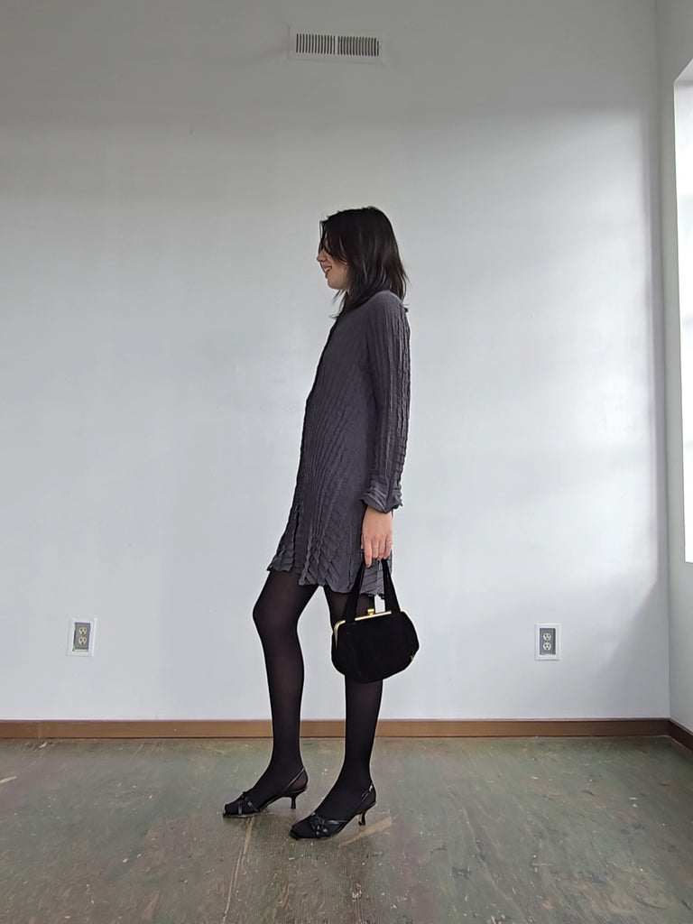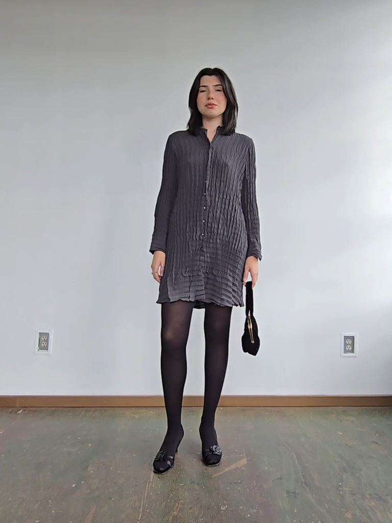 Vintage Babette slate gray crinkled snap button dress. Excellent condition, marked size x-small.