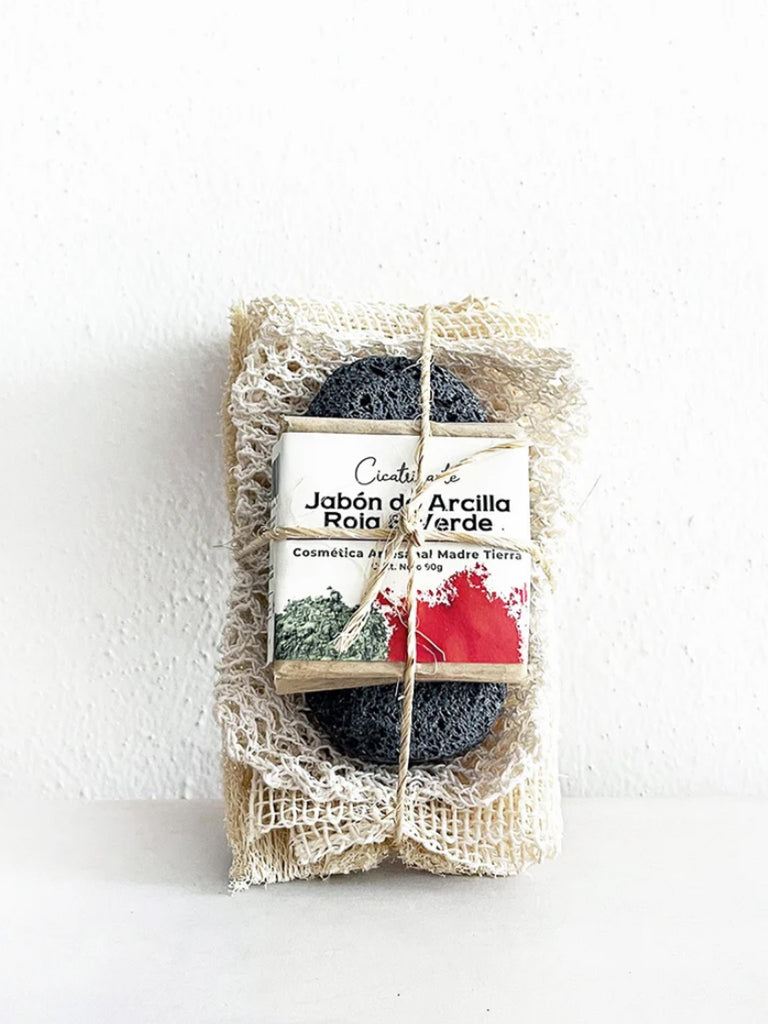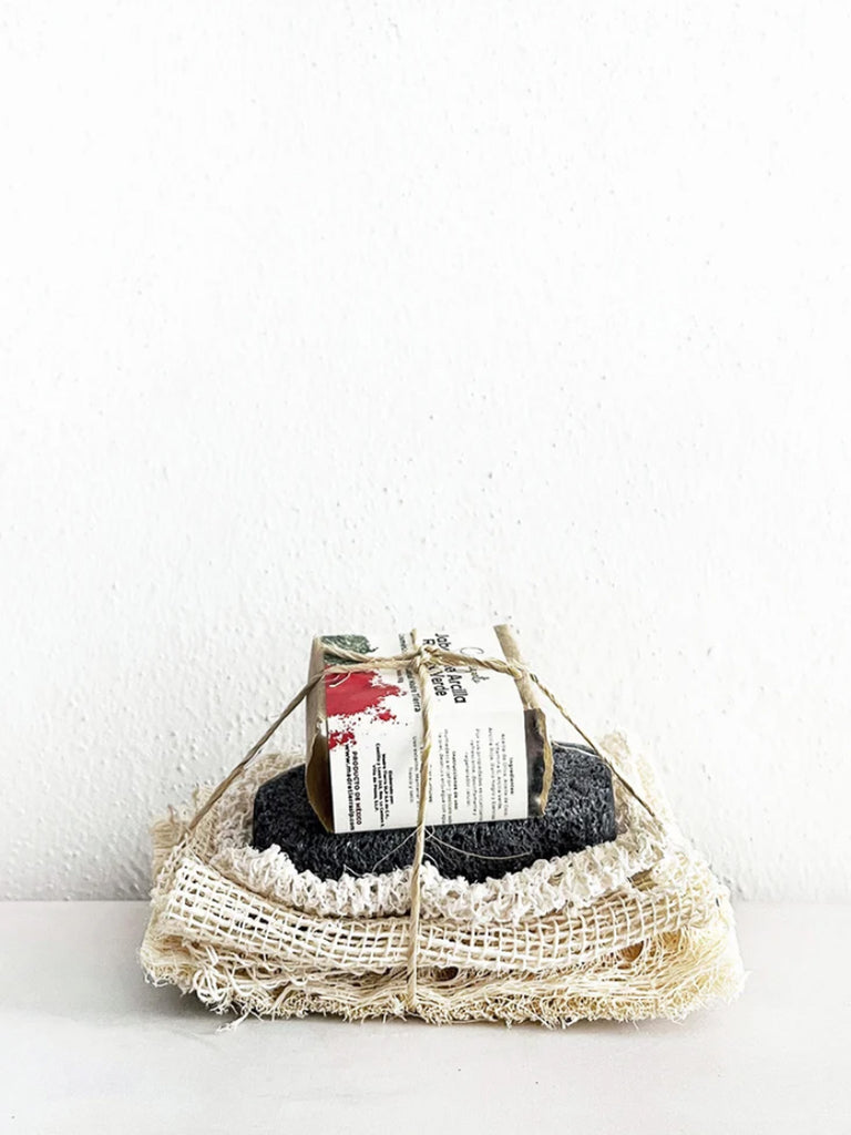 Treat yourself or a loved one to a decadent spa day with a curated selection of handmade works from various groups in Mexico. This bundle includes a vegetable sponge, a backstrap-woven exfoliating cloth and crocheted soap bag that are both made with hand spun agave string that’s done with a drop spindle. The set also includes a rounded pumice stone, as well as a gorgeous bar of handmade soap that’s comprised of red and green clay. These bundles are biodegradable and vegan-friendly, as they do not contain animal products of any kind. Every piece is assembled by hand and tied with agave string.