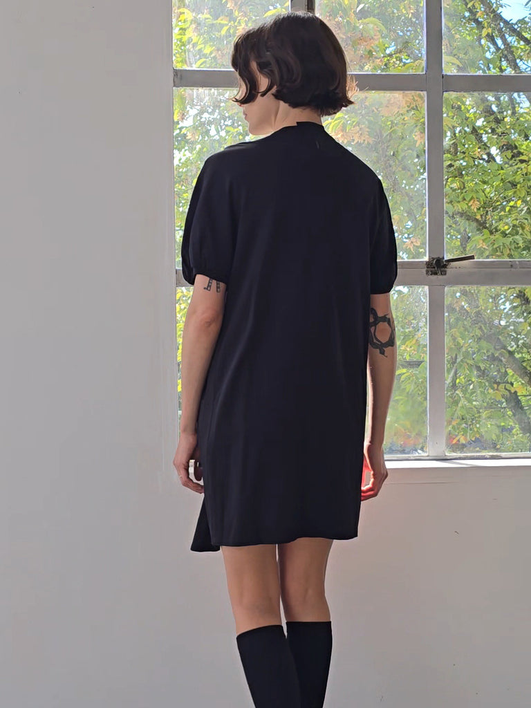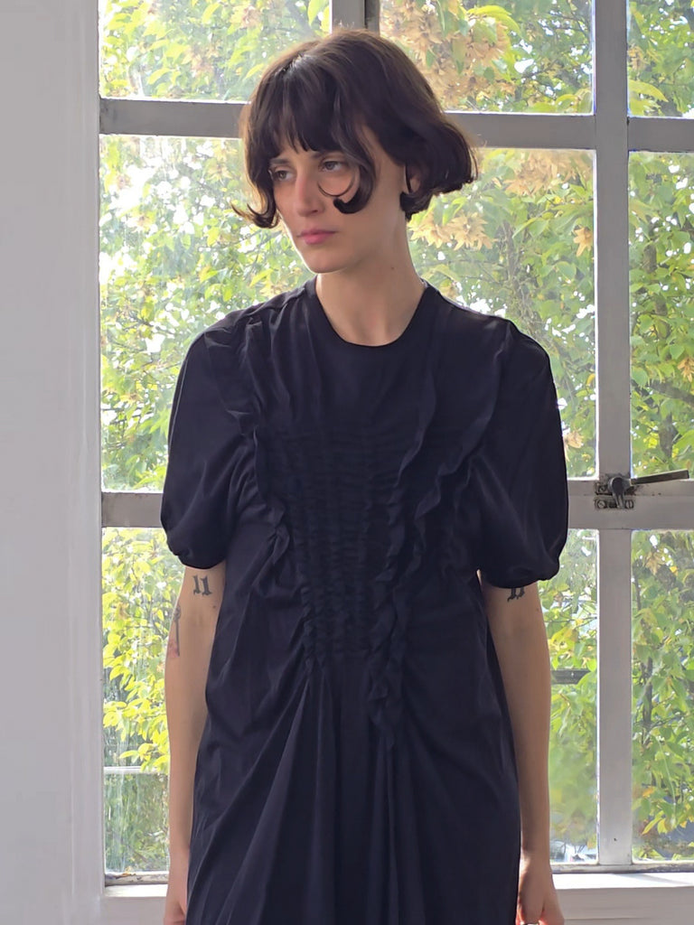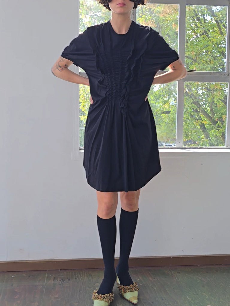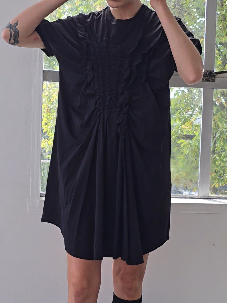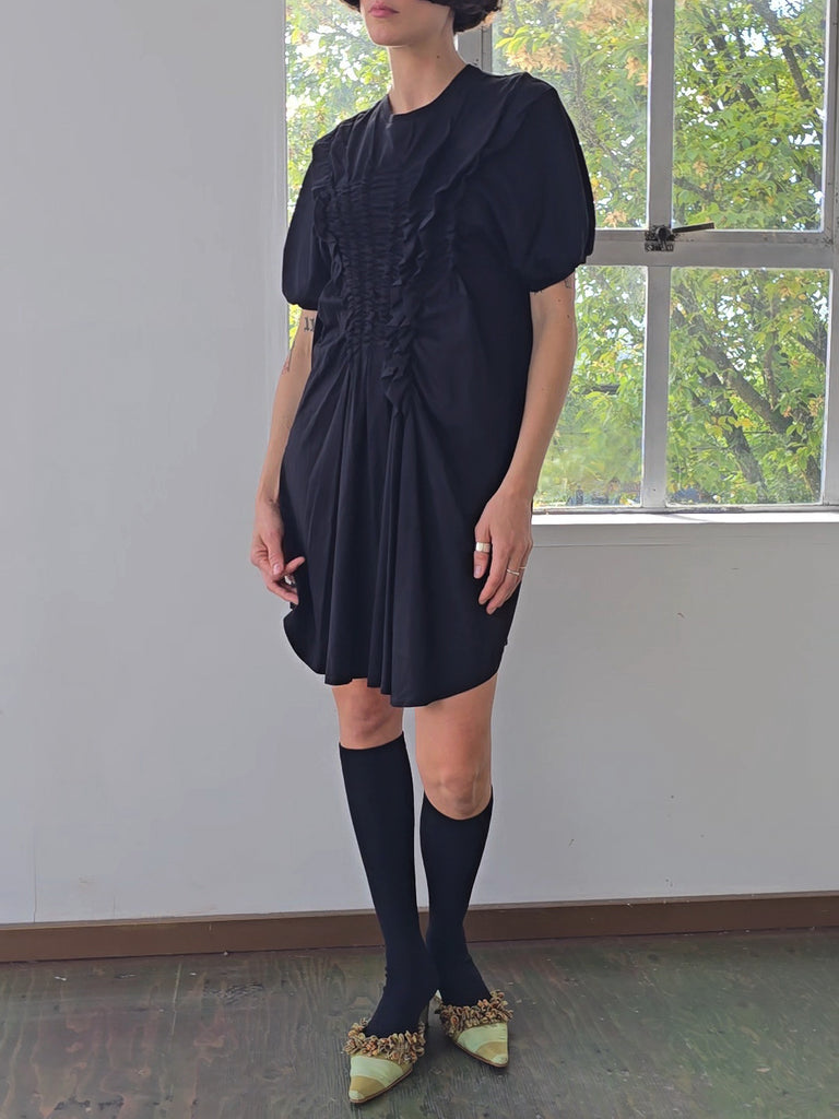 Black mini dress with a ruffled chest. Made by Simone Rocha. In excellent condition.