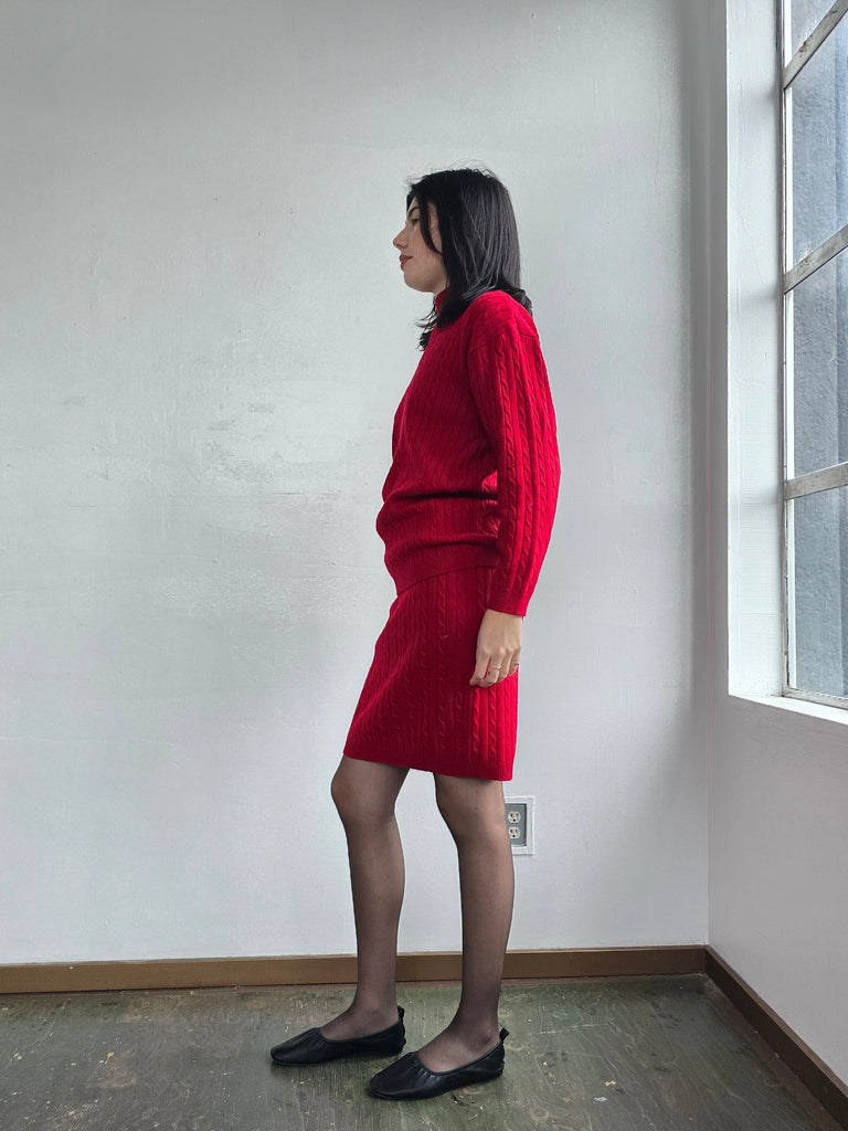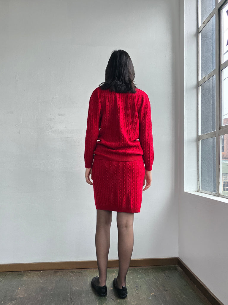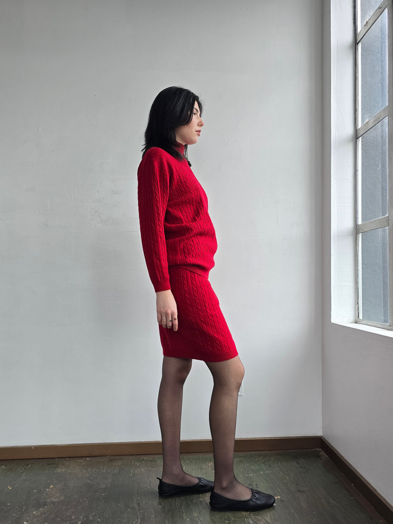 Red Merino Wool Cableknit Set