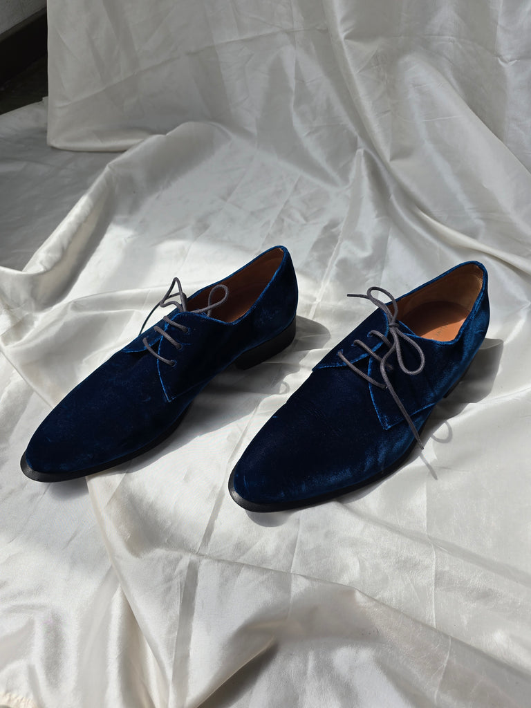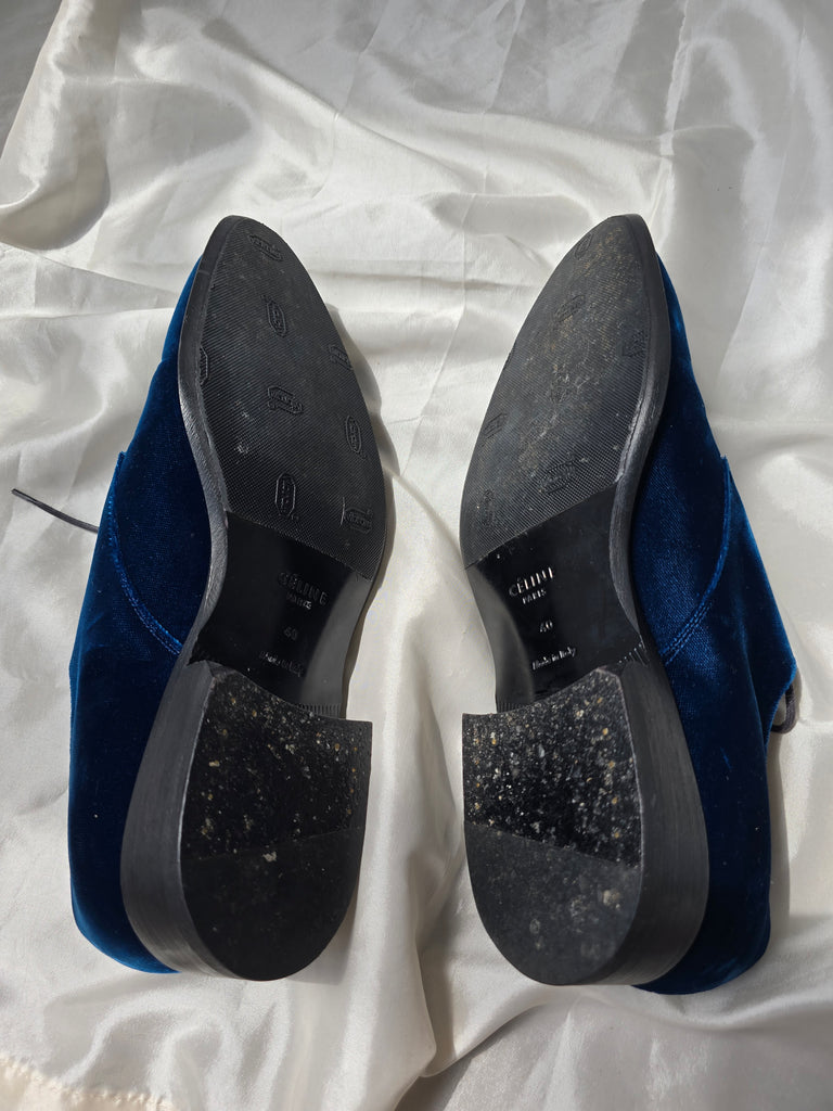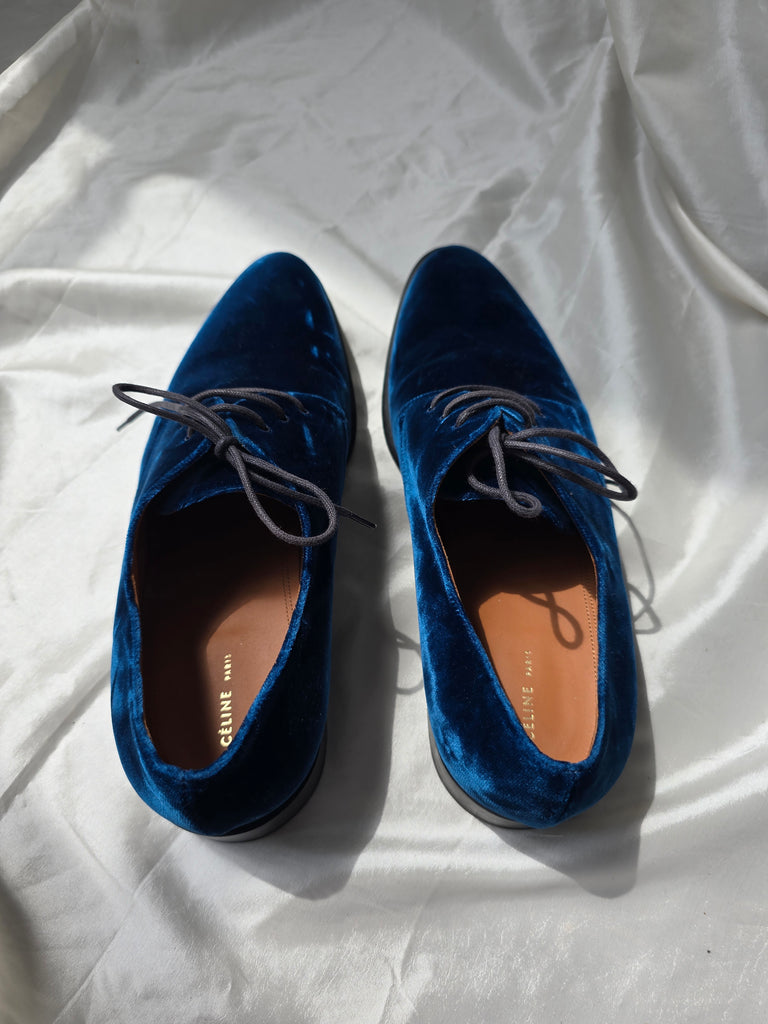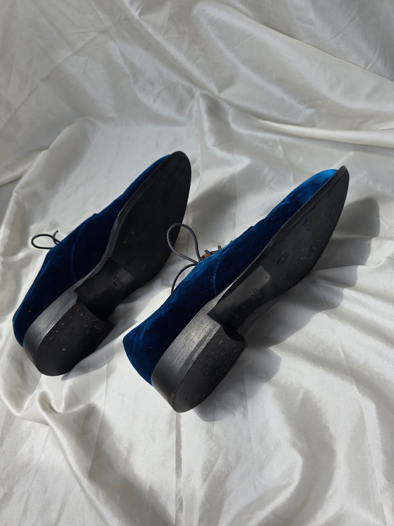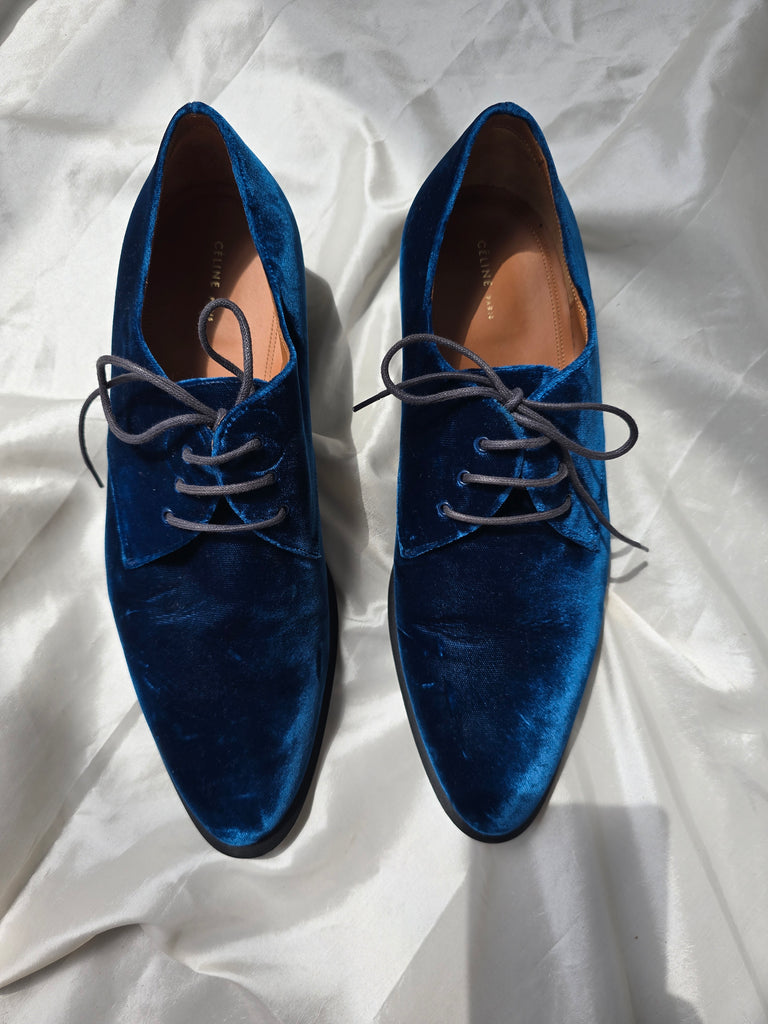 Gorgeous blue velvet vintage Celine derby lace up shoes. Excellent condition with minimal wear. Marked Size 40.