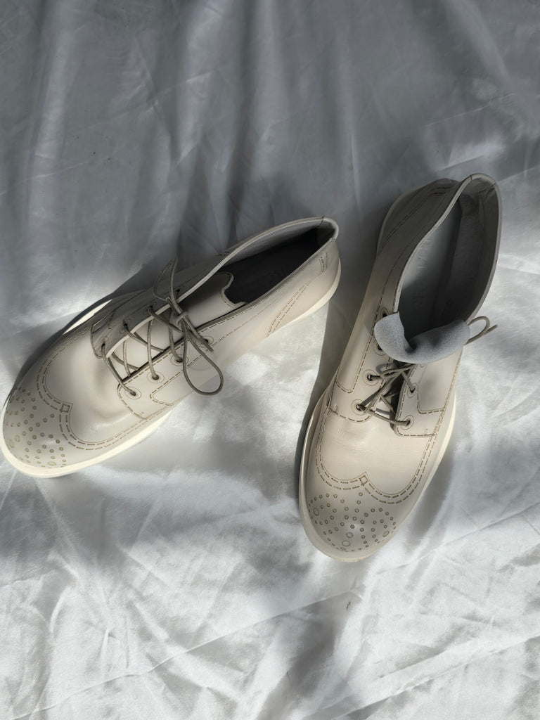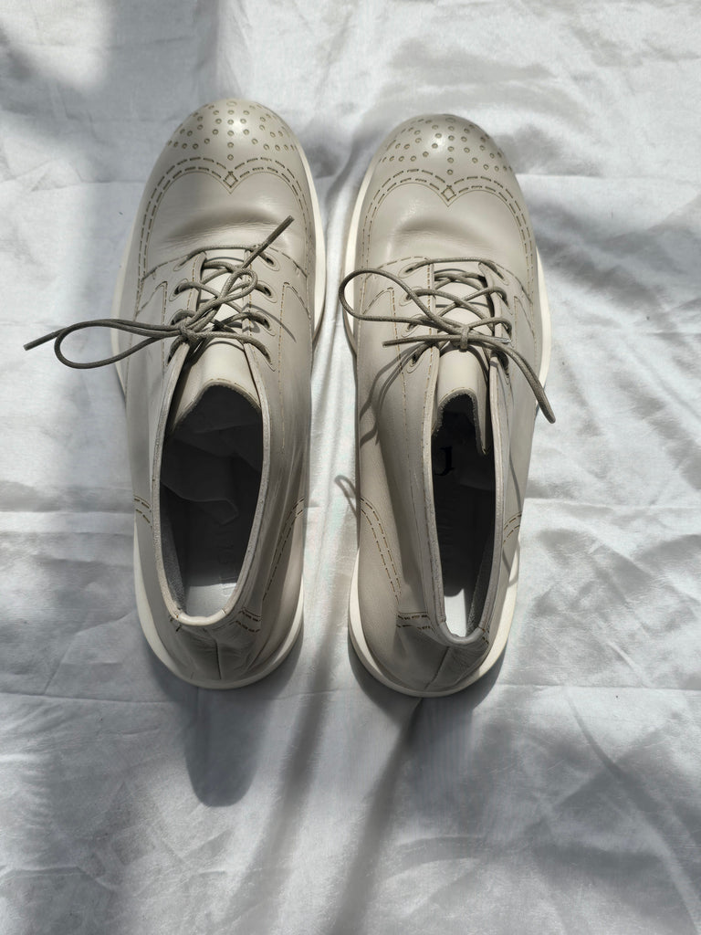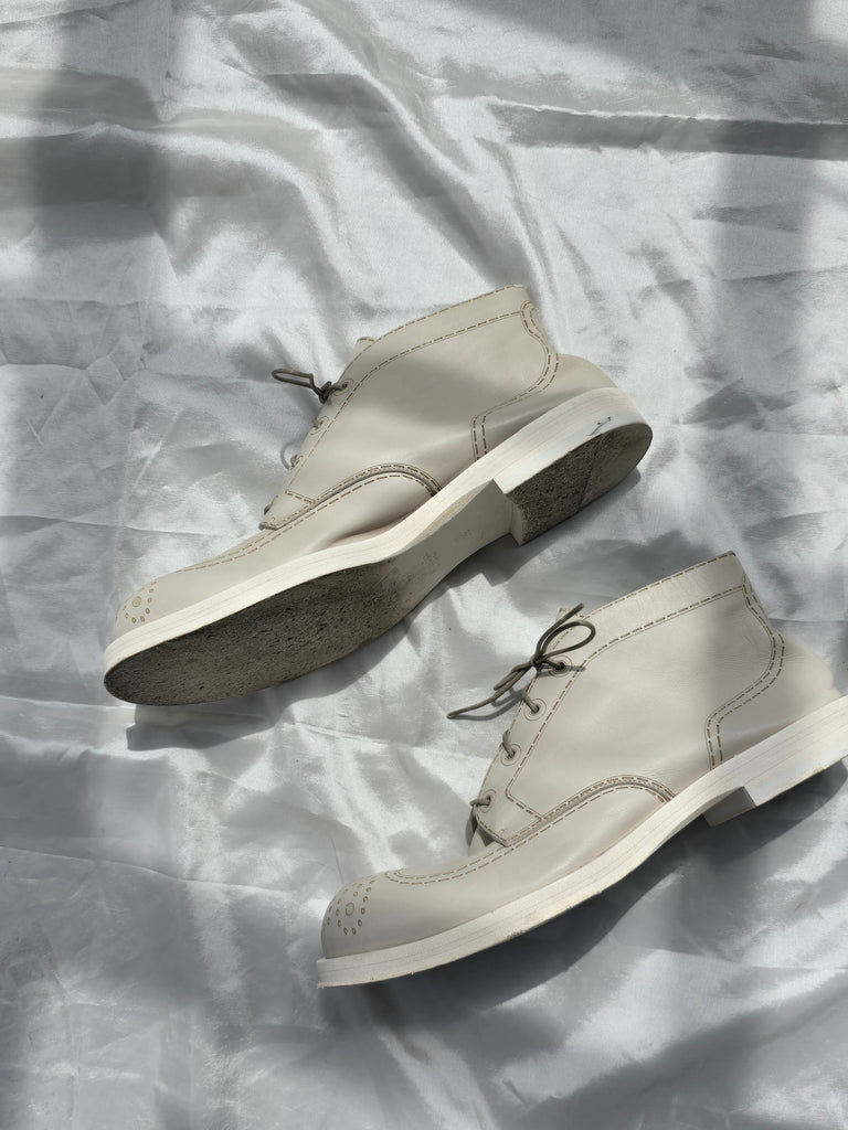 Vintage Jil Sander bone white leather derby shoe with a higher ankle rise. Embossed stitiching and detailing. In excellent condition, minor wear on sole. Marked size 39.
