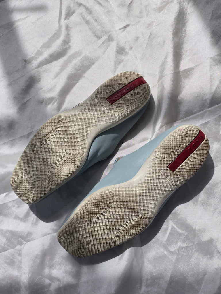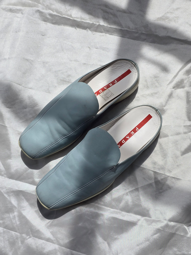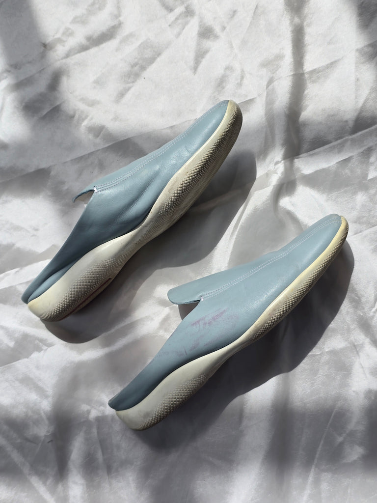 Vintage baby robin's egg blue Prada slides, made in Italy. In good condition with some staining on the leather (see photos). Not a lot of wear on soles. Marked size 36.5.