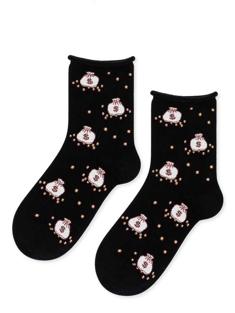 Step up your sock game with Money Bags Crew. No need to be stingy with your style - these socks will have you feeling like a rich fashionista (even if you're just lounging at home in them).