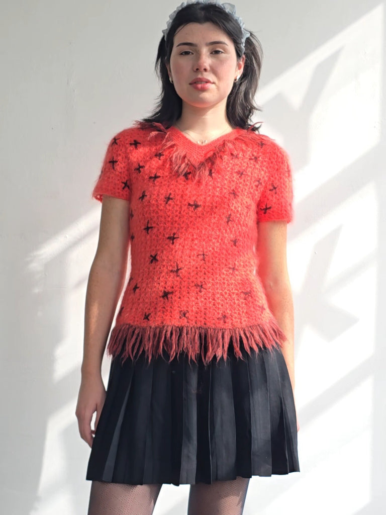 Valentino Ribbed Lettuce Sleeve Black Knit