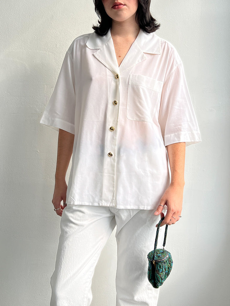 Beige Silk 90s Button Down