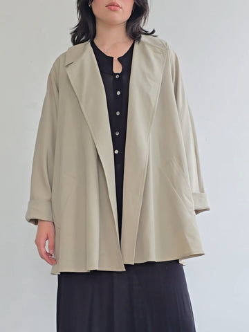 Lovely flattering beige wool swing coat by Max Mara. Single button closure and side pockets. Partially lined. Marked size 44.