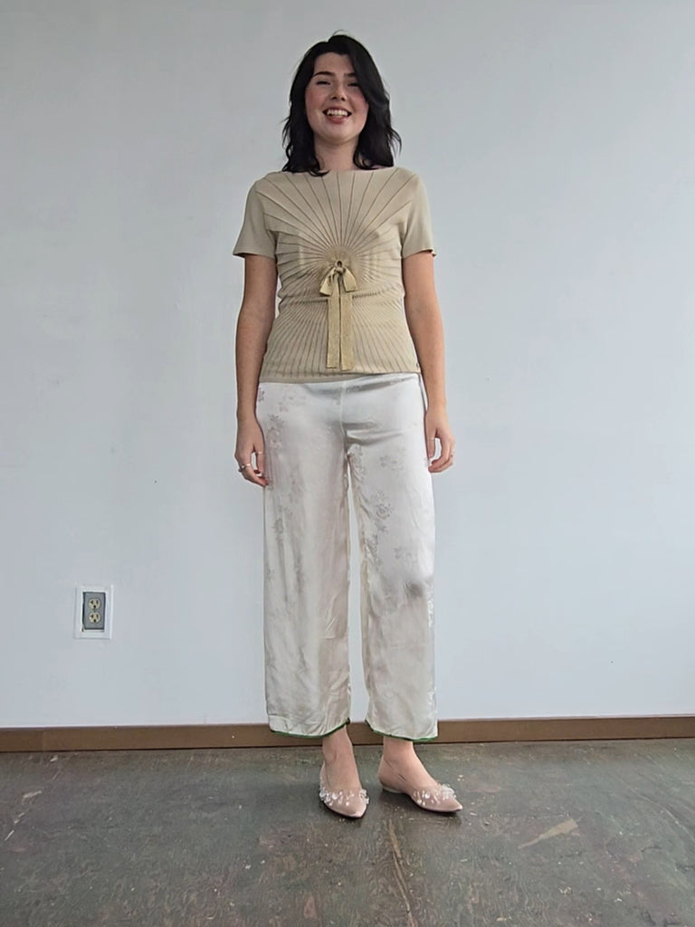 Cream Rayon Brocade 1920s Beach Pajama Pant