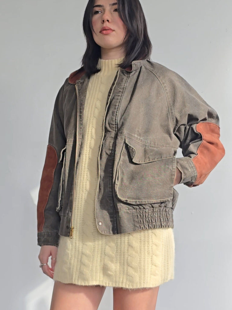 Brown Canvas + Leather Bomber