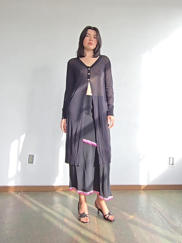 Black Cotton Crepe Sheer Knit