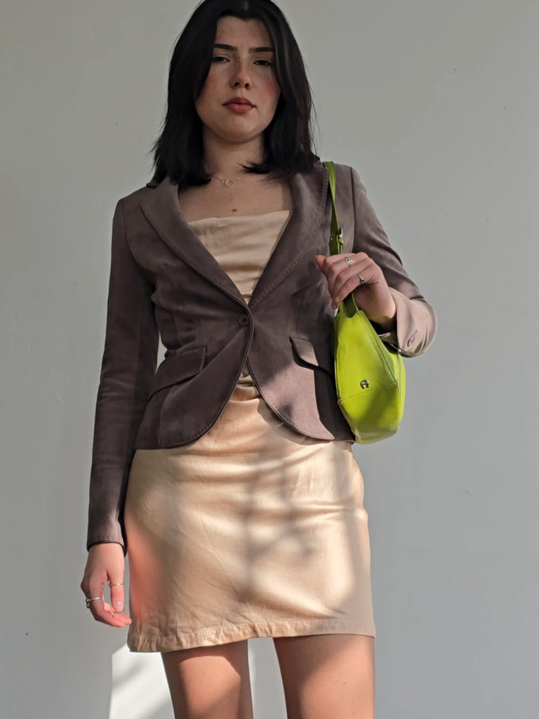 Soft Gray Y2k Velvet Jacket