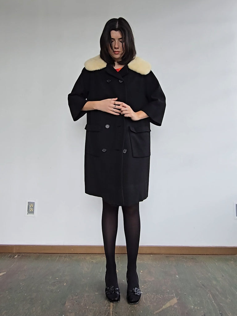 1960s White Fur Collared Coat