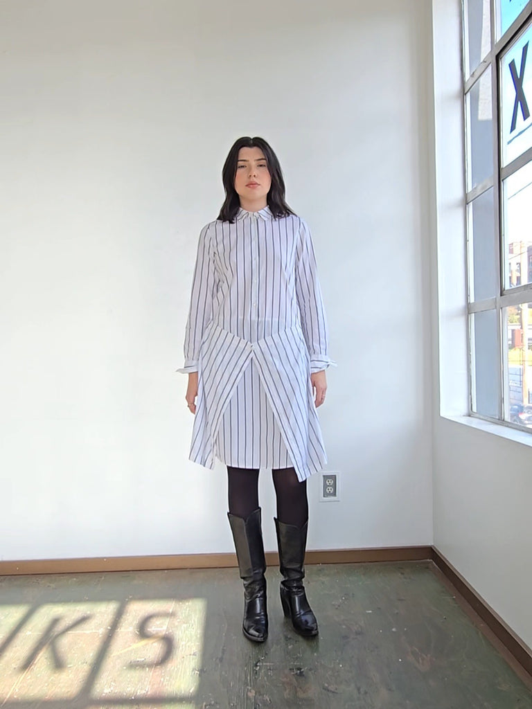 Layered Striped Cotton Shirtdress