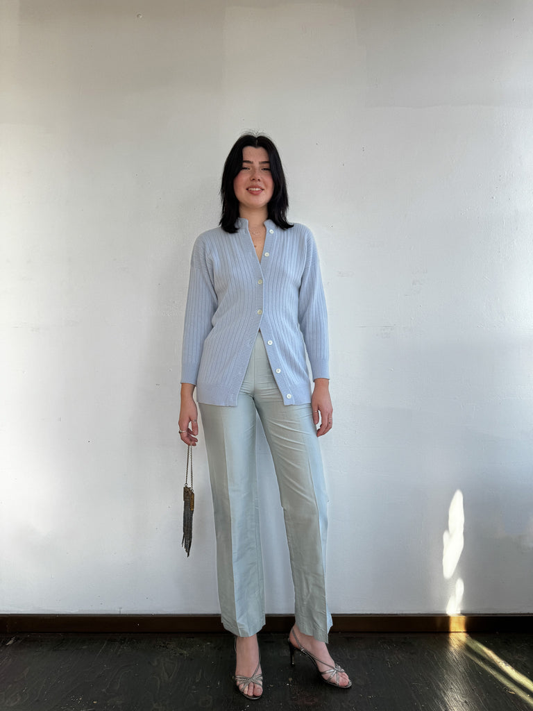 Valentino Ribbed Lettuce Sleeve Black Knit