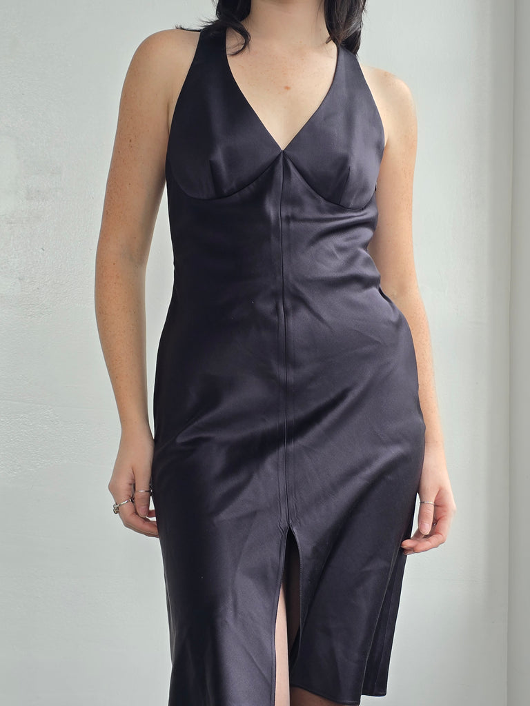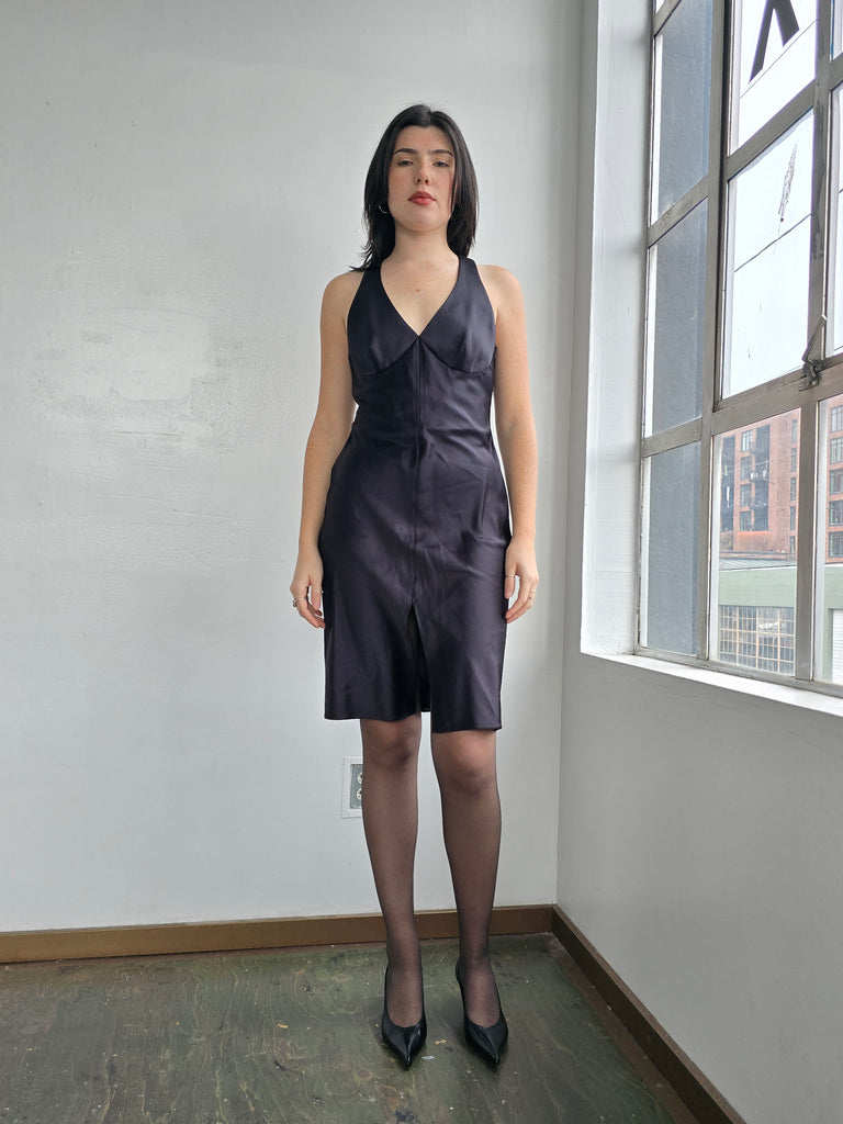 Giorgio Armani Black Silk Satin Cocktail Dress