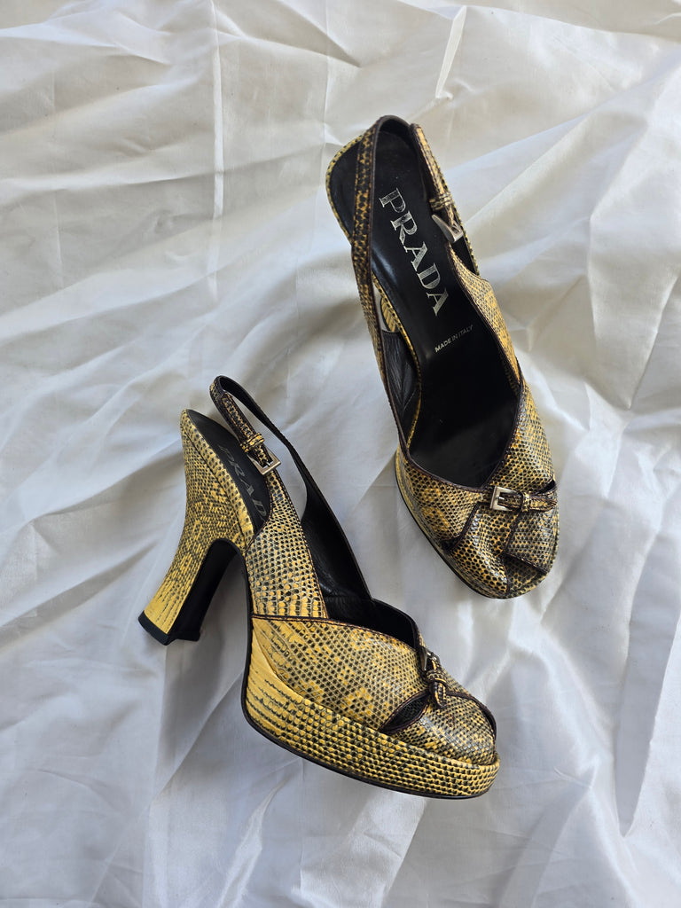 Prada Snakeskin Platform Heels (37.5)