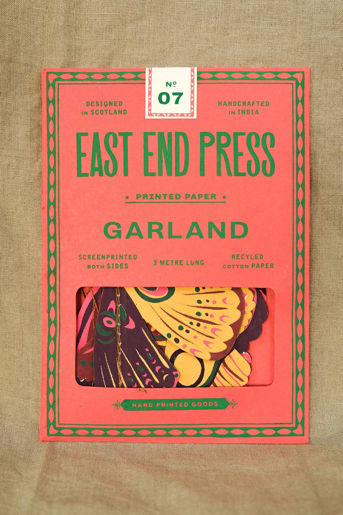 3 metres long - Includes 10 paper shapes, sewn along strong cotton thread - Screen printed by hand on both sides by talented artisans in Jaipur - Sustainably made from recycled materials