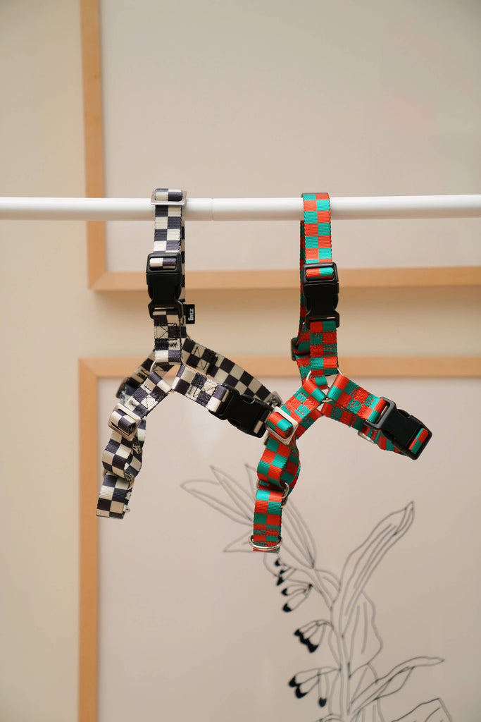 We love the checker vibes! This harness is made from polyester and is reversible. The D Ring Strap may prevent dogs from pulling or connecting with the collar for extra safety.