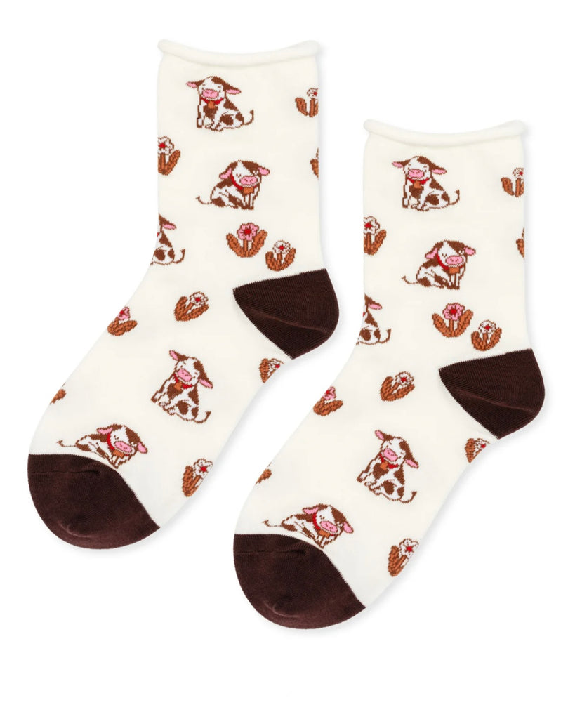 These Cow in the Meadow Crews have a relaxed charm is sure to add a whimsical touch to any outfit. And, as they graze, you'll be charmed by their carefree (and utterly adorable) nature.