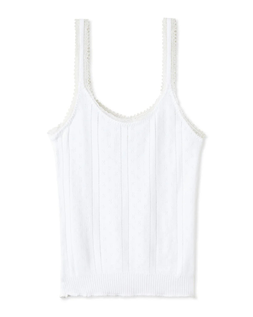 100% cotton pointelle featuring delicate lace and picot edging. Lovingly made in Los Angeles.