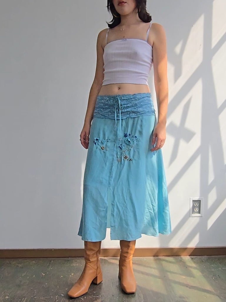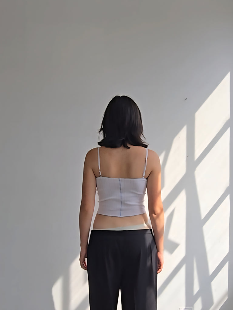 Long Bandeau Top – White/Blue Bow