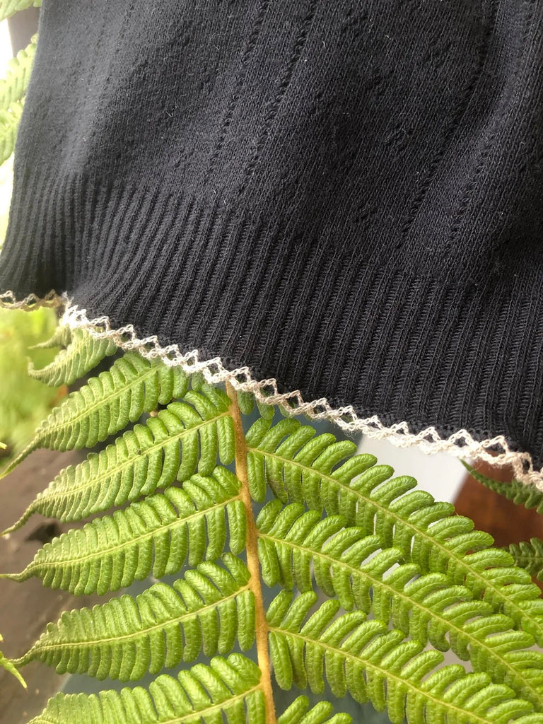 Perfect pointelle knit black cotton bloomers with crème contrast vintage stitching from Pretties. We love this for lounging or for more coverage under our sheer vintage pieces :)