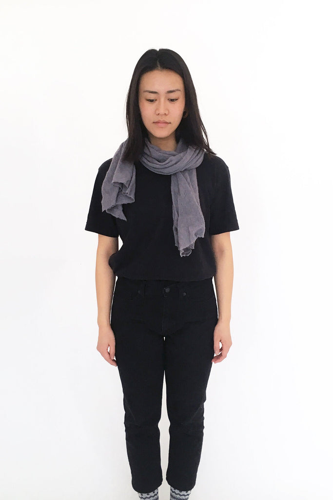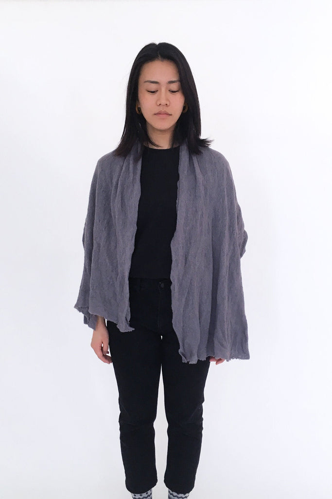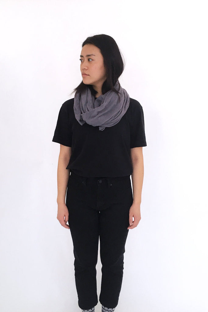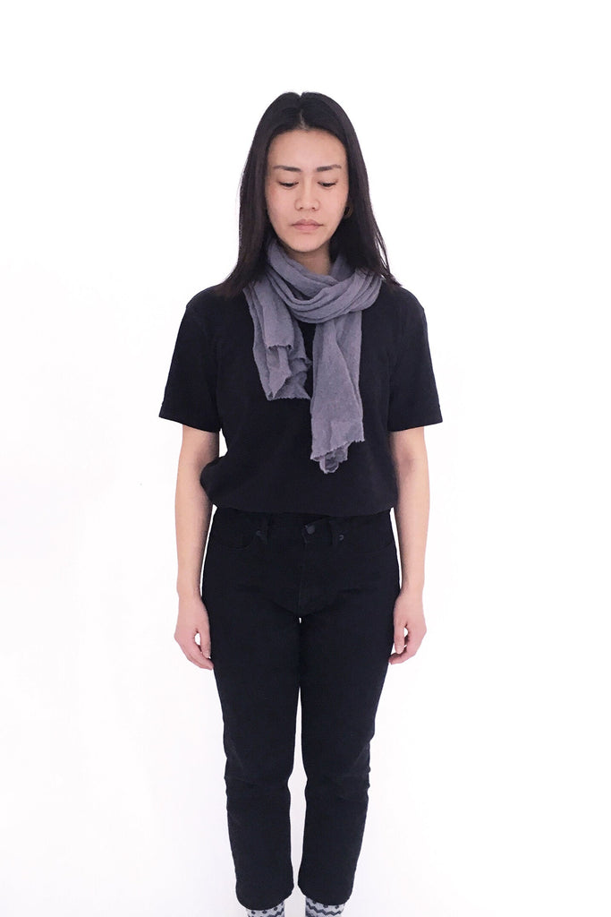 Ultra soft hand dyed cream color wool-cashmere knit scarf. A very soft, drapey knit fabric that ranges from slightly transparent to opaque which gives a textural appearance, like a cloud.
