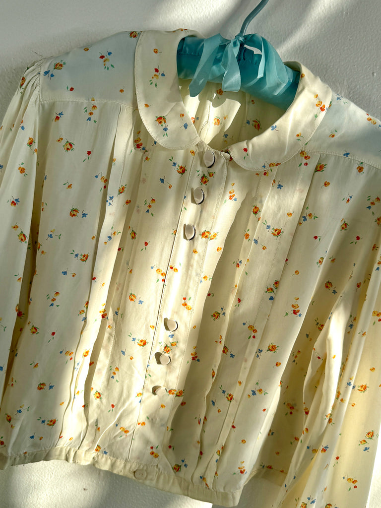 40s Bud Print Pintucked Blouse