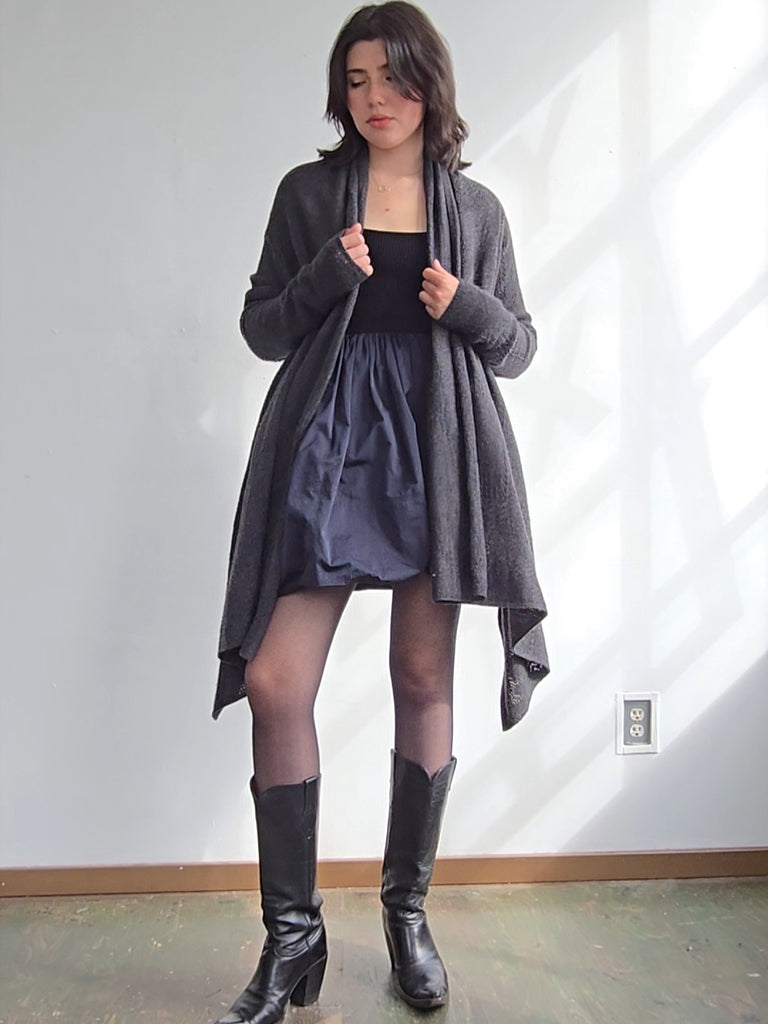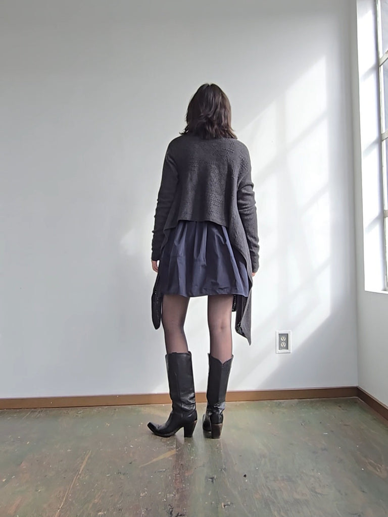 TSE grey knit sweater that is croppped in the back and very long in the front. In great condition. No marked size.