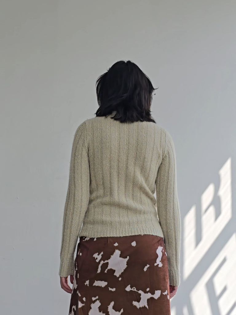 TSE ribbed longsleeve turtleneck sweater. There is a small hole on the left sleeve cuff but otherwise in good condition. No marked size.