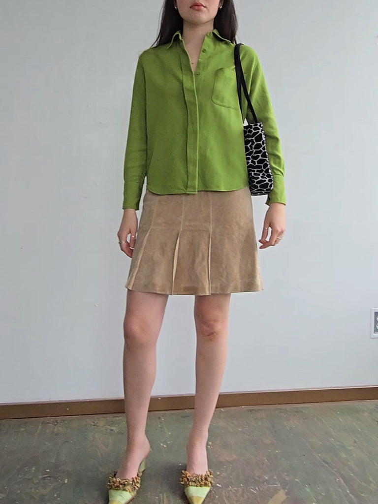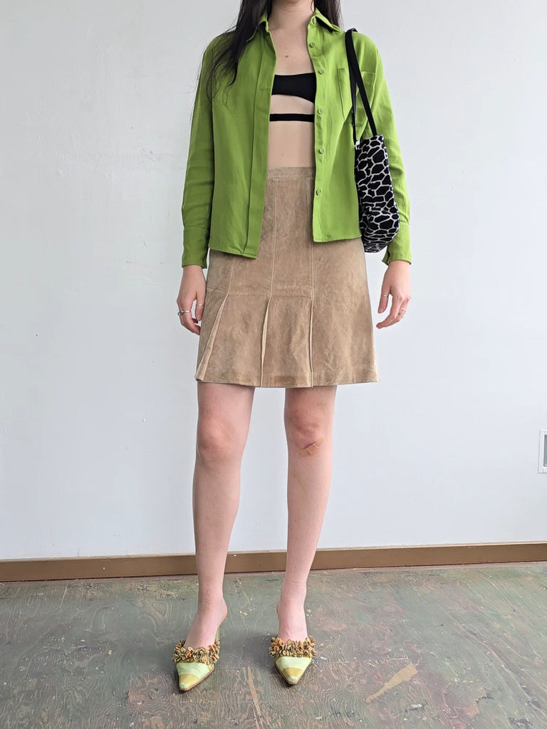 Almond Suede Pleated Skirt