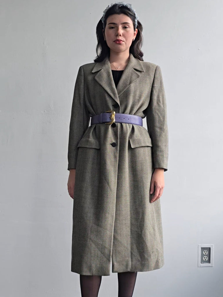 Vintage Armani herringbone single breasted coat. Lined, excellent vintage condition. Marked size 12.