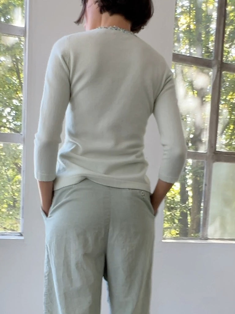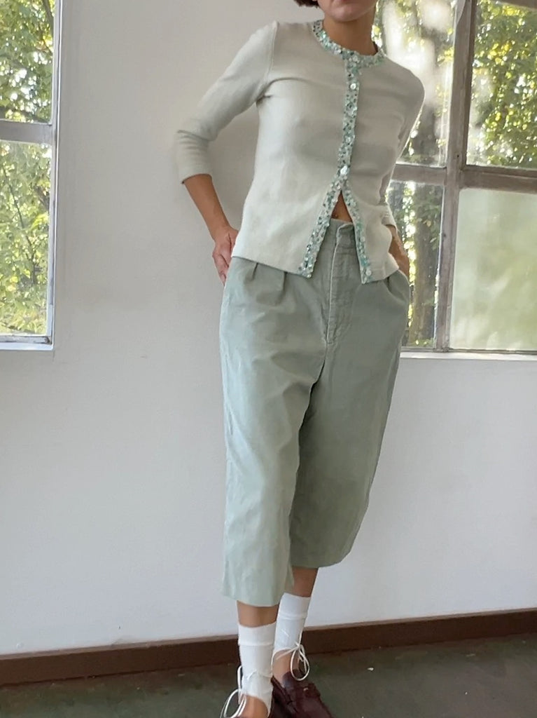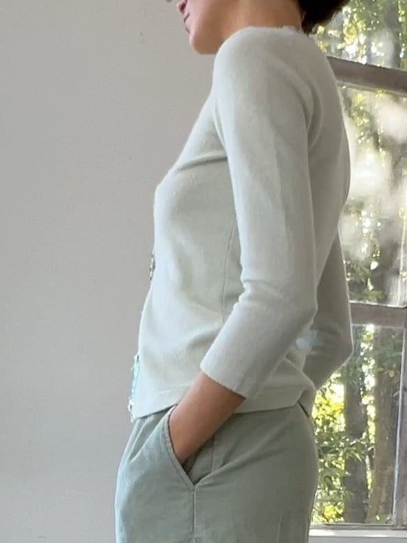 Sweet 90s vintage button front cardigan with sequin details. 3/4 sleeves. A few minor spots of pilling.