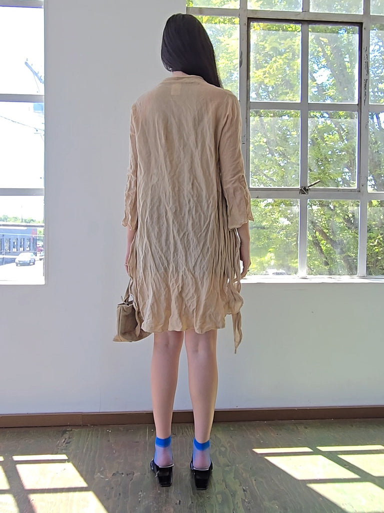 Italian-made long open cardigan. This piece is slightly sheer with longsleeves and front hem that is longer than the back. In great condition. Marked size 44.