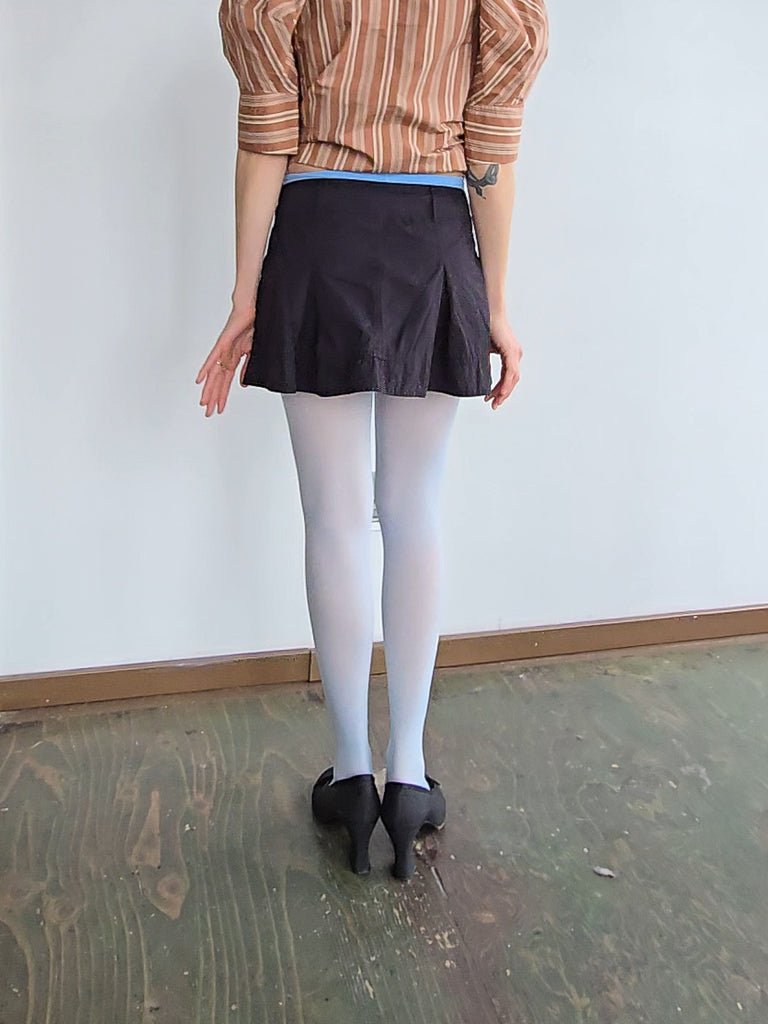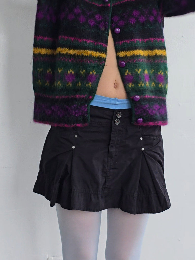 Black micro mini skirt by United Colors of Bennetton. Pockets at the sides with a zipper fly and ruffle edge. Great condition.