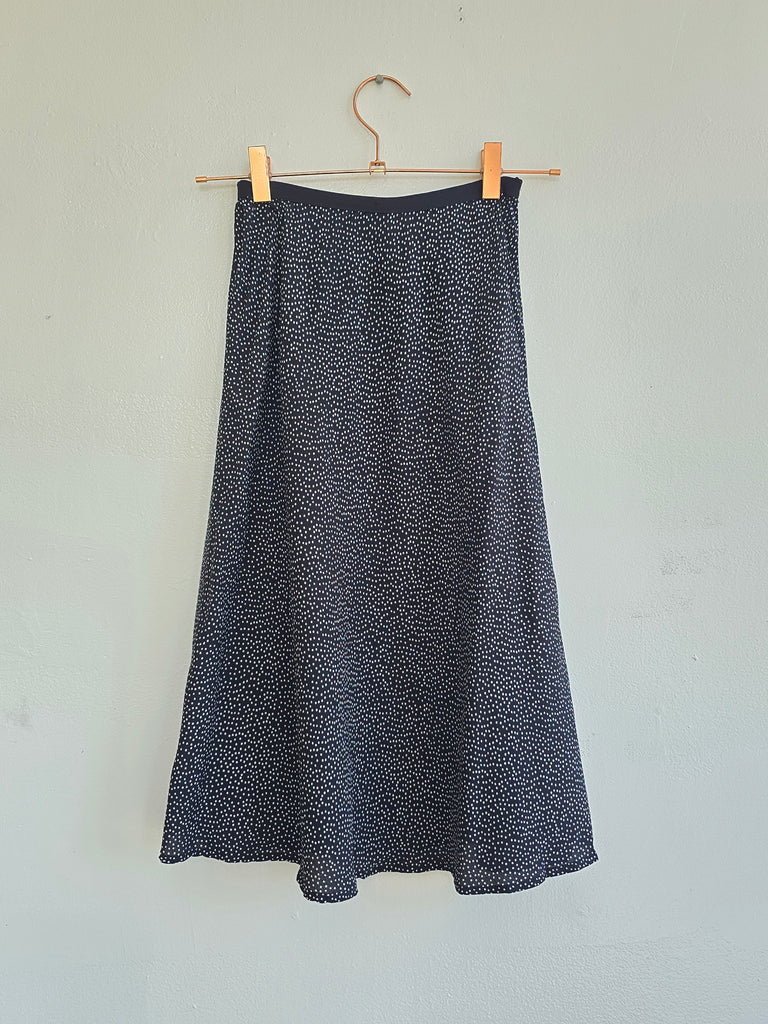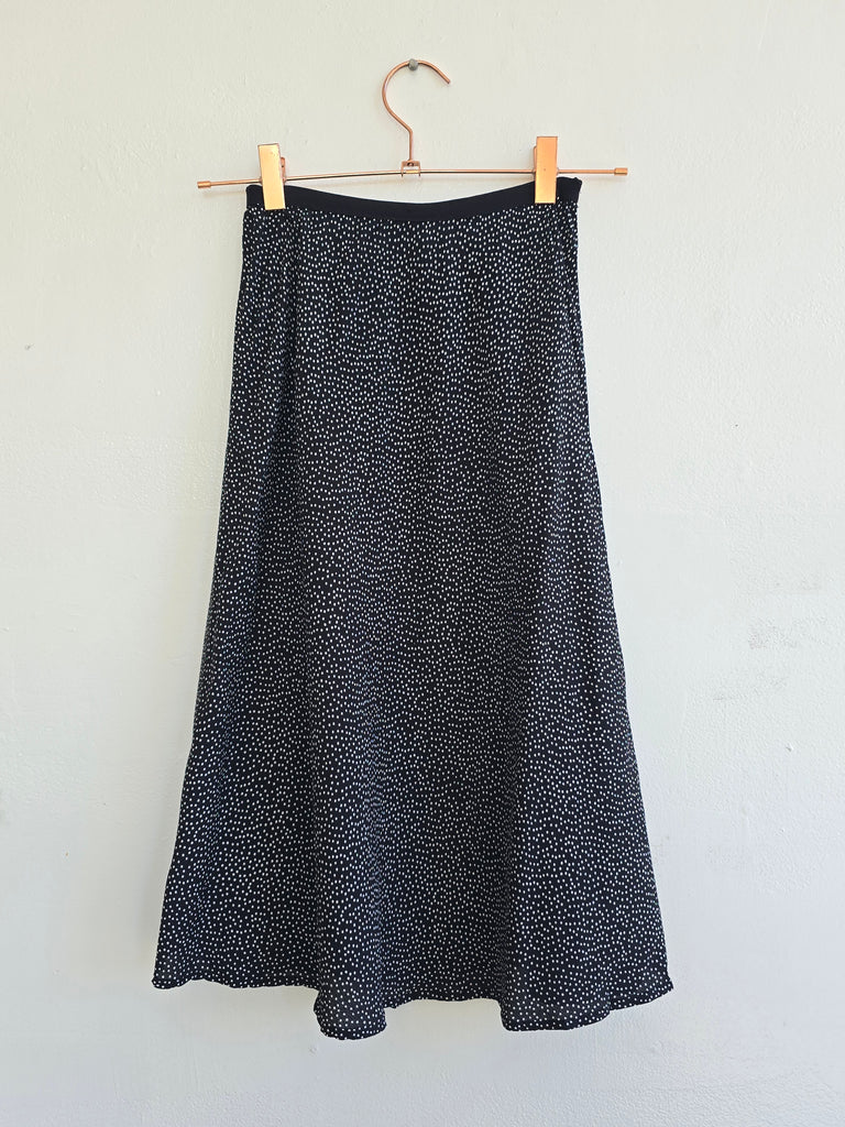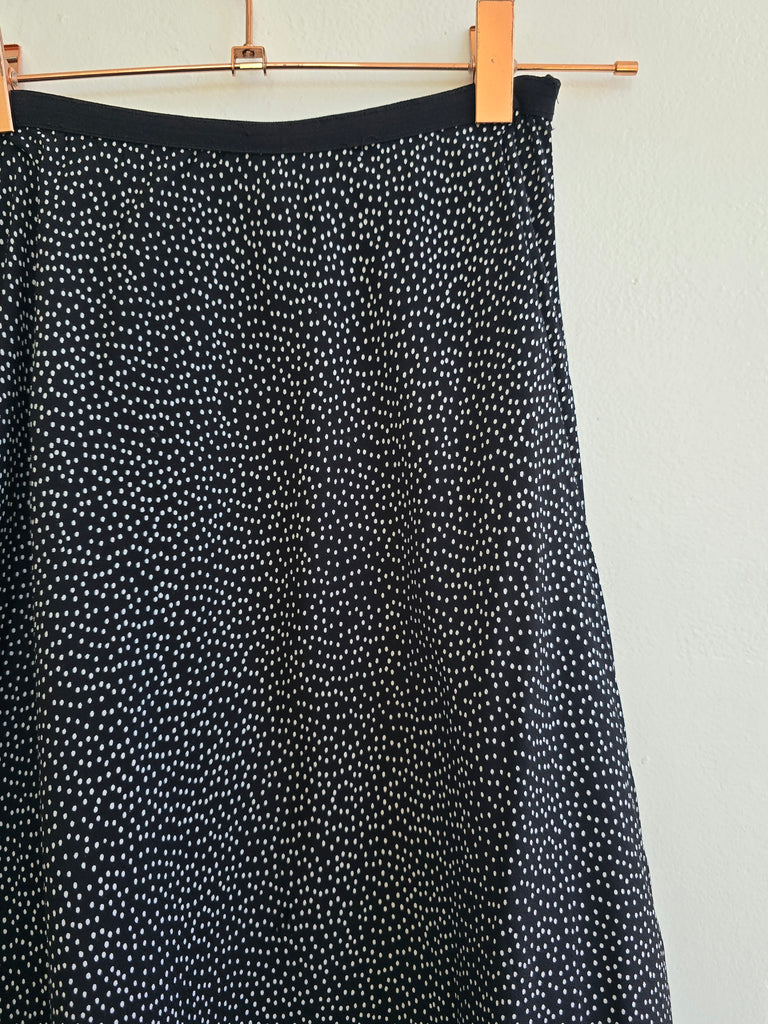 Vintage rayon black polka dot skirt with elastic waist. Excellent condition. Marked size S.