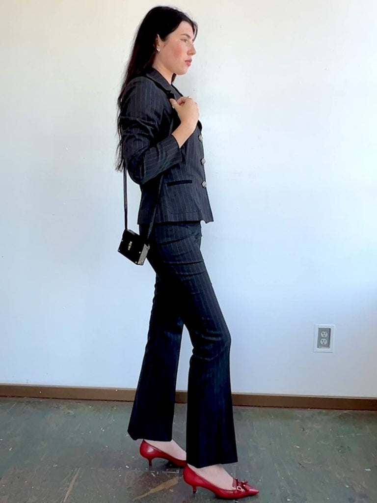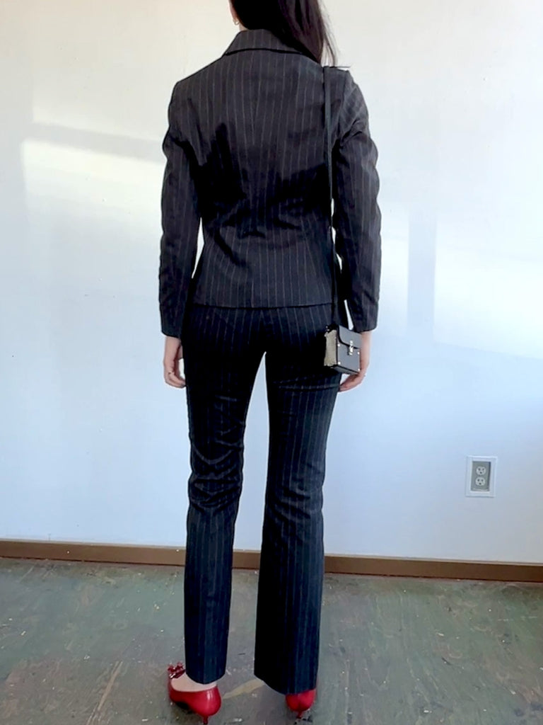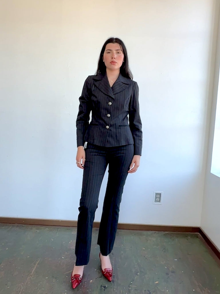 Charcoal Pinstripe Y2K Blazer w/Sparkle Buttons (S)
