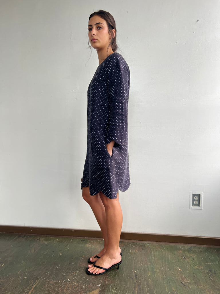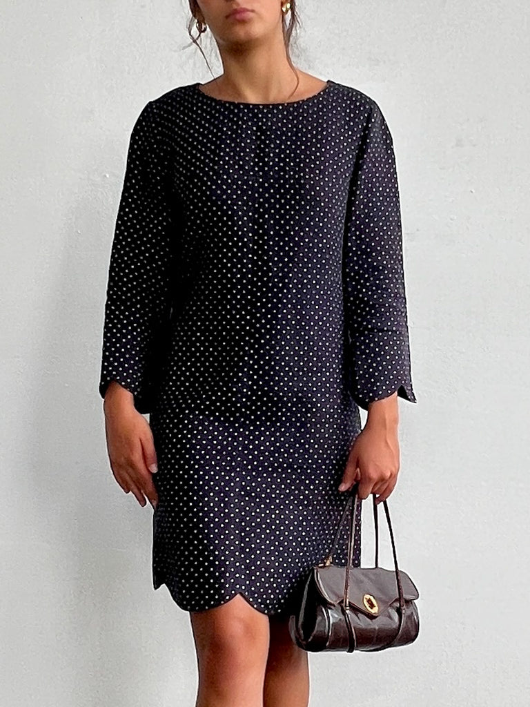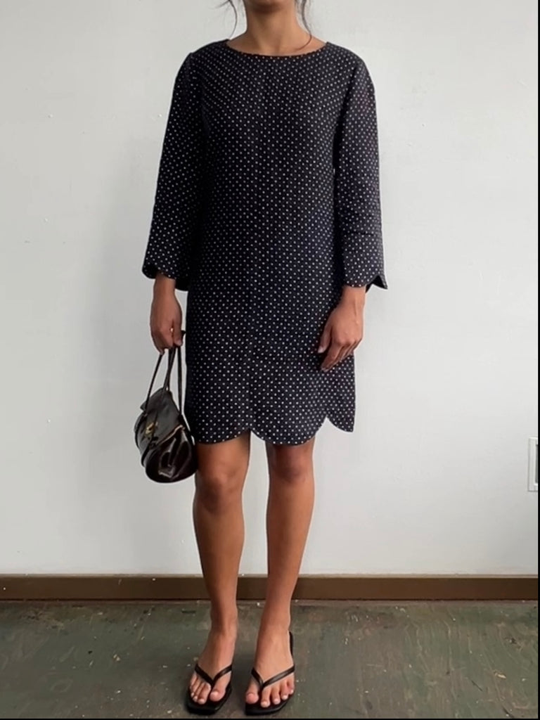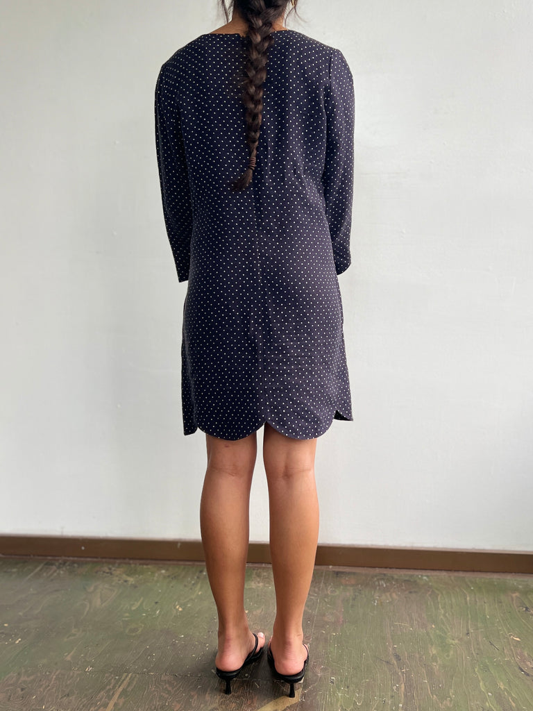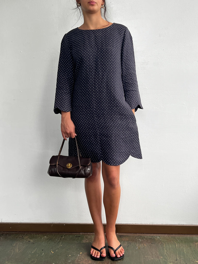 Chloe polka dot lighty A-line linen dress with a scalloped hem and cuffs. Phoebe Philo era. Zip closure at back, with two pockets at the hips. Made in France. In great condition.