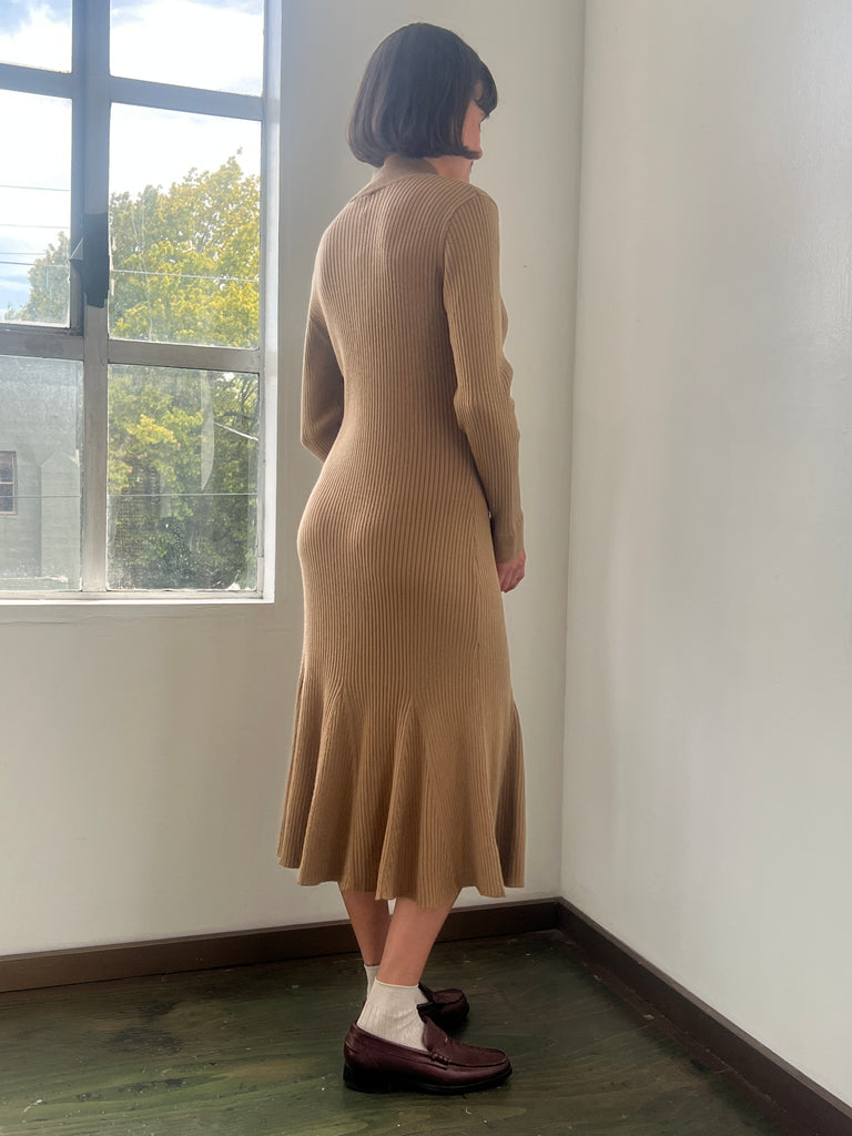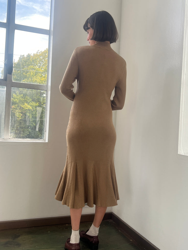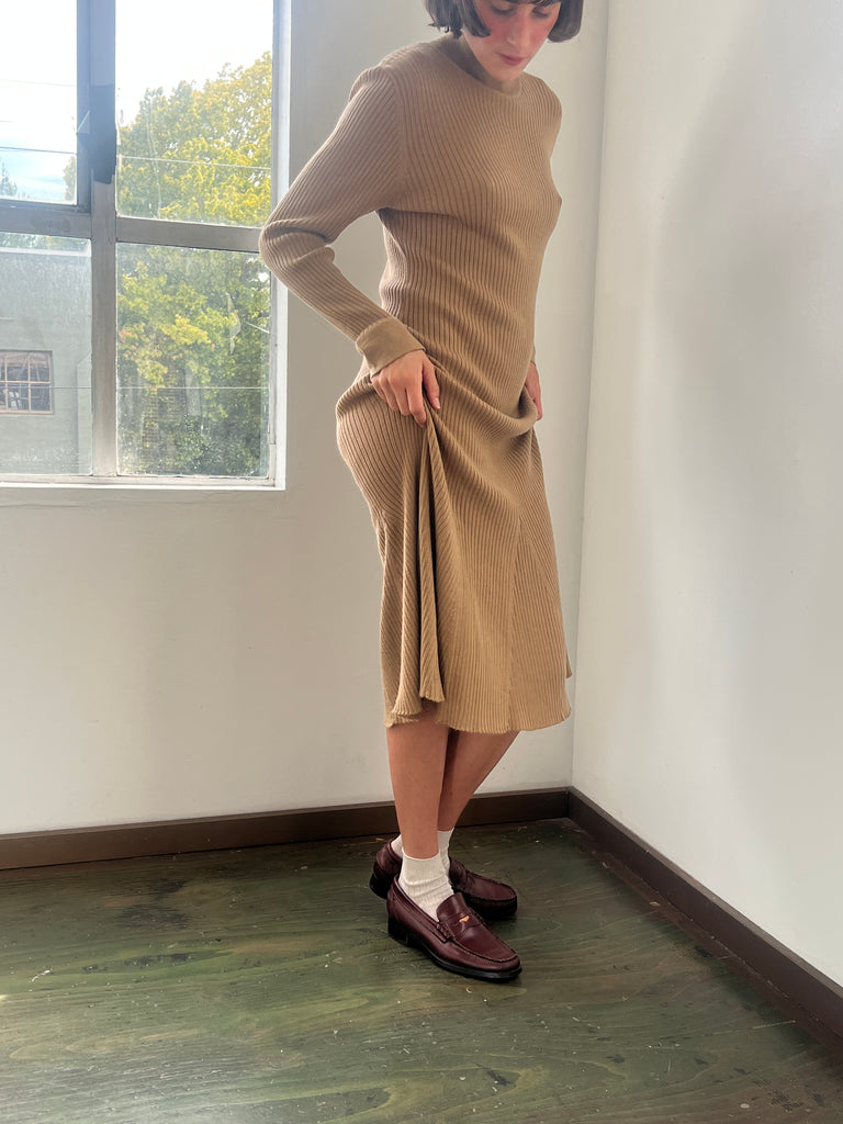 Vintage DKNY wool blend knit maxi dress. RIbbed with a flared hem. Great condition with original tags still attached.