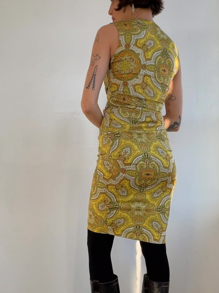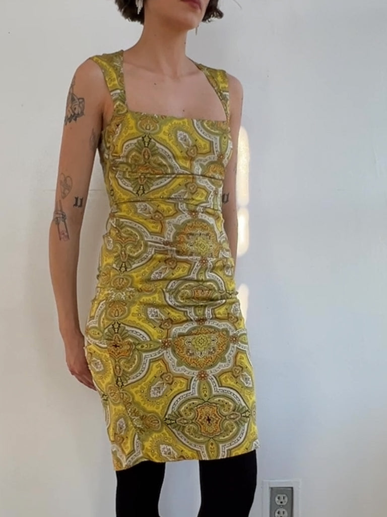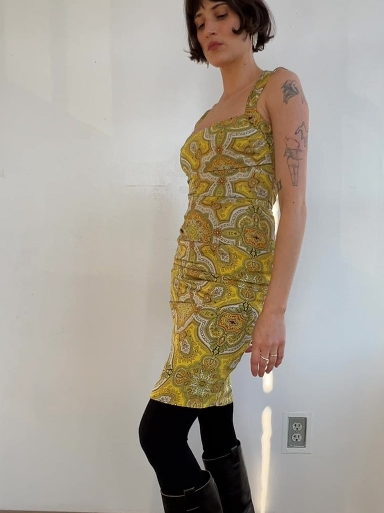Y2K Nicole Miller silk jersey bodycon party dress. Square neckline with ruched sides. Soft and slinky with a bit of stretch, in excellent condition.