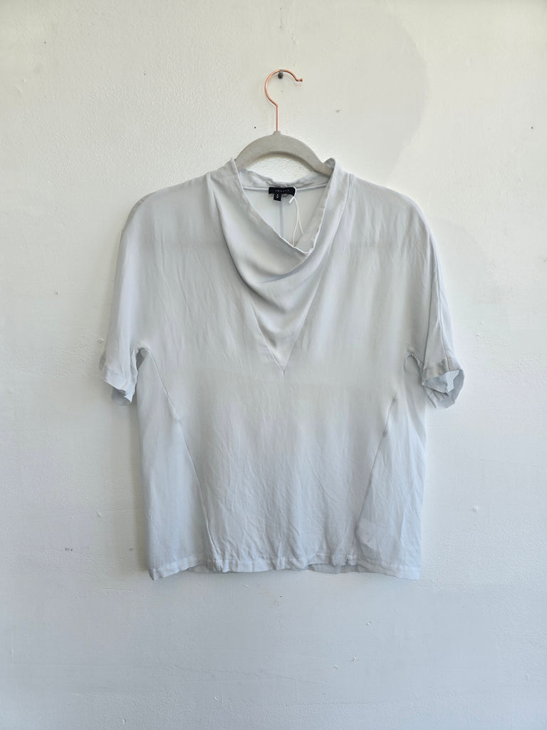 Ice Blue Silk Cowl Neck Blouse