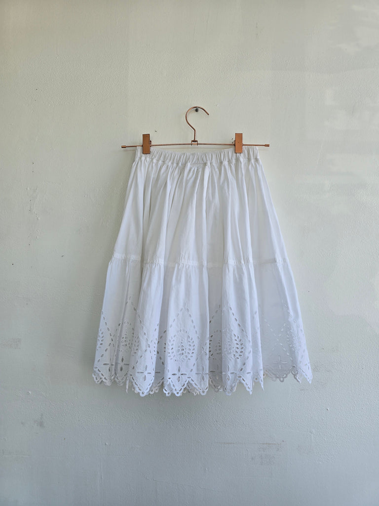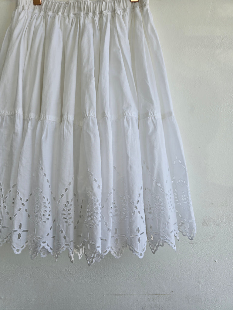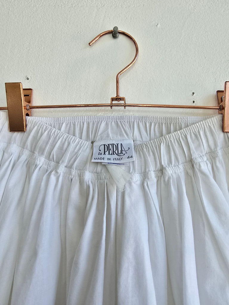 Vintage La Perla cotton tiered skirt with cutout embroidery at hem. Excellent condition. Marked size M.
