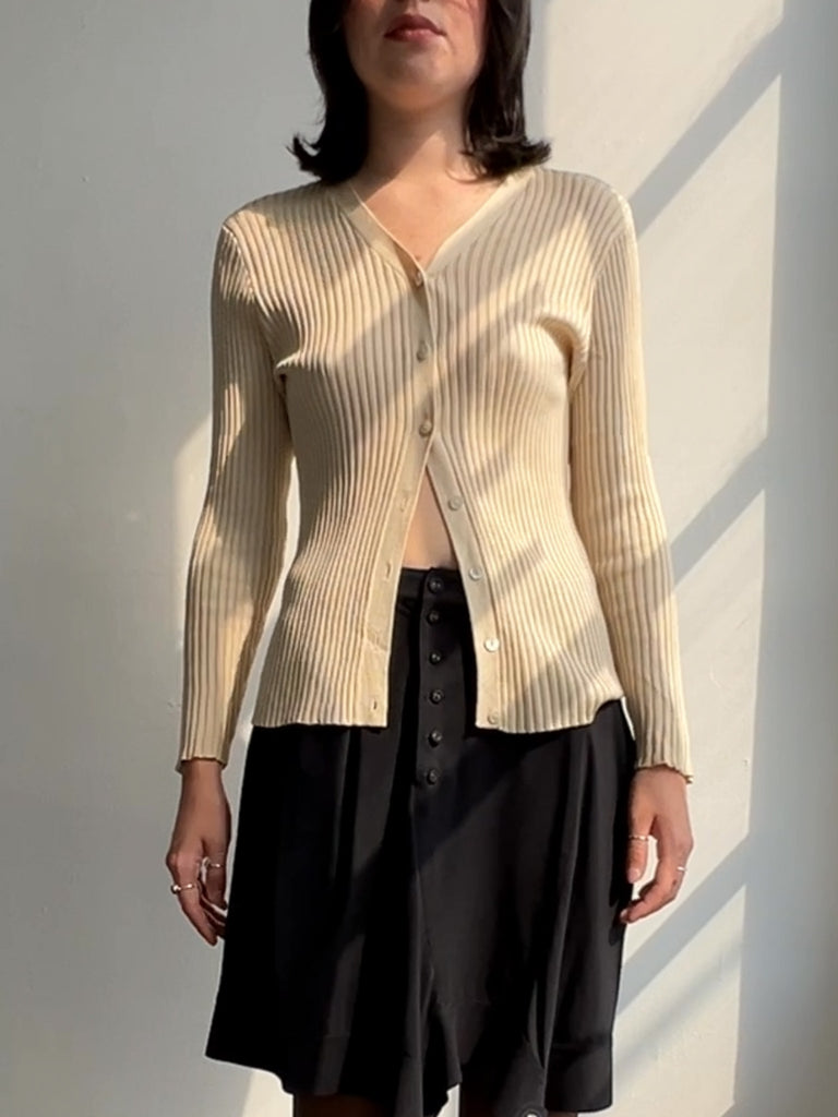 Latte Silk Ribbed Cardigan